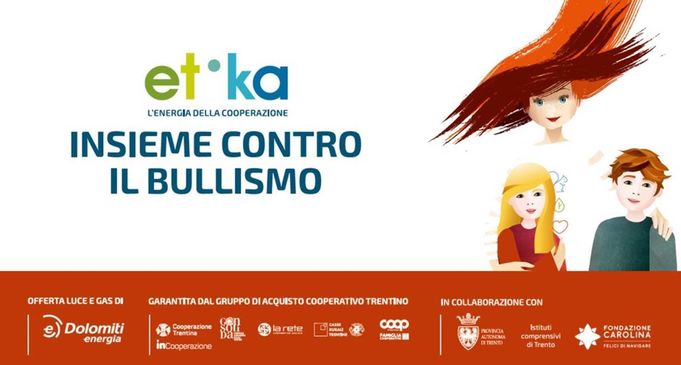 Il bullismo si combatte informando, sensibilizzando e aiutando tutte le persone coinvolte: bulli e vittime, compagni e compagne di scuola, insegnanti e genitori. Per questo all’inizio dell’anno scolastico che sta per concludersi, i sette istituti comprensivi della città di Trento sono stati coinvolti in un percorso di prevenzione e contrasto al bullismo, realizzato grazie al sostegno di Etika, l’offerta luce e gas della Cooperazione Trentina con Dolomiti Energia, e il cofinanziamento della Provincia Autonoma di Trento e dei singoli Istituti.